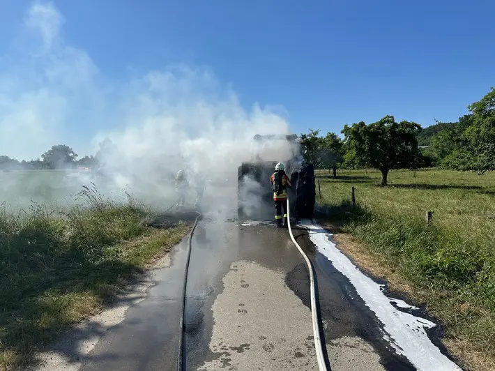 Am 13.06.2023 wurden die Abteilungen Espasingen, Wahlwies und Kernstadt um 16:38 Uhr zum Brand eines Traktors auf den Gemeindeverbindungsweg zwischen Espasingen und Wahlwies alarmiert.
