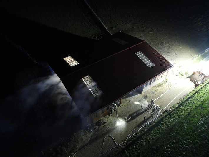 Bei der Anfahrt zum Einsatzort war für die Einsatzkräfte bereits ein deutlicher Feuerschein sichtbar. Vor Ort stand ein Stallgebäude mit angrenzendem Heulager in Vollbrand. Glücklicherweise konnten die Tiere noch vor Eintreffen der Feuerwehr aus dem brennenden Gebäude gerettet und in einem benachbarten Gehege in Sicherheit gebracht werden.