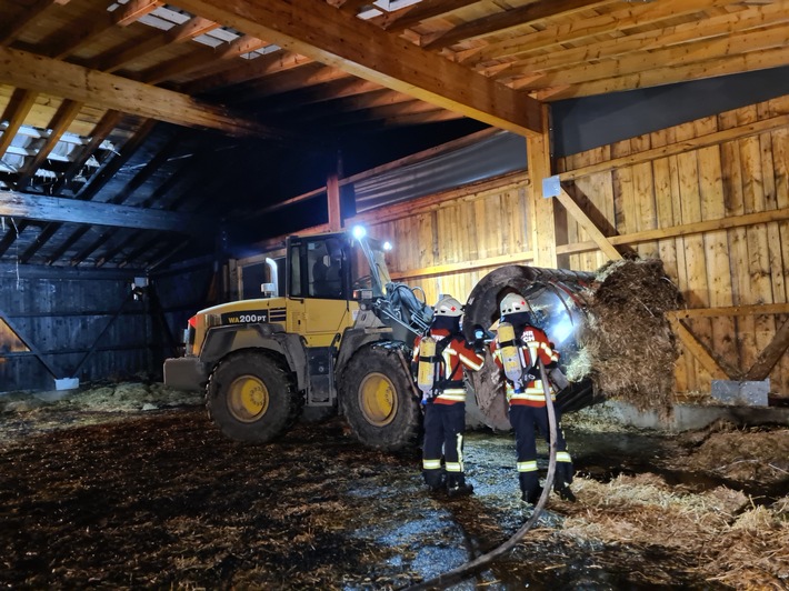 Das schnelle und beherzte Eingreifen der zuerst eintreffenden Kräfte ermöglichte eine rasche Eindämmung des Feuers und verhinderte dessen weitere Ausbreitung. Eine Riegelstellung schützte angrenzende Bereiche vor einem Übergreifen des Brandes. Die Löschwasserversorgung wurde durch mehrere Löschfahrzeuge sowie einen temporär eingerichteten Pendelverkehr sichergestellt. Während des Einsatzes wurden die glimmenden Heuballen mithilfe eines vorhandenen Radladers auseinandergezogen und abgelöscht. Zudem erfolgten umfangreiche Nachlöscharbeiten an der Dachkonstruktion. Der Gesamteinsatz dauerte etwa drei Stunden.