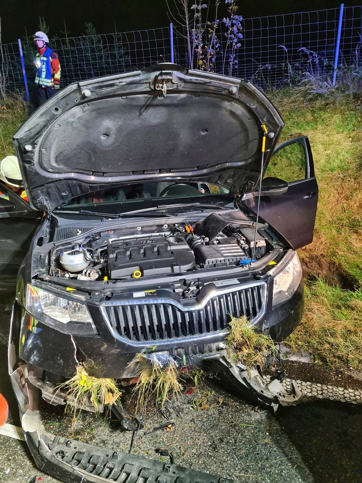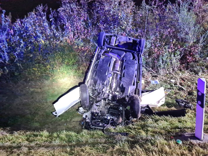 Vor Ort konnte beim Eintreffen der Feuerwehr ein stark deformierter PKW auf dem Grünstreifen der Autobahn auf dem Dach liegend angetroffen werden.