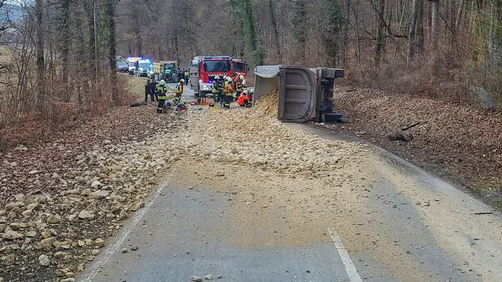 Am Mittwochmorgen, den 07.02.2024 gegen 9:30 Uhr, wurden die Feuerwehr Abteilungen Eigeltingen und Reute sowie die Feuerwehr Stockach zu einem Verkehrsunfall auf der Landstraße 440 zwischen Eigeltingen und Heudorf bei der Lochmühle alarmiert. Ein Lastwagen war von der Straße abgekommen und umgekippt. Der Fahrer war im Führerhaus eingeklemmt.