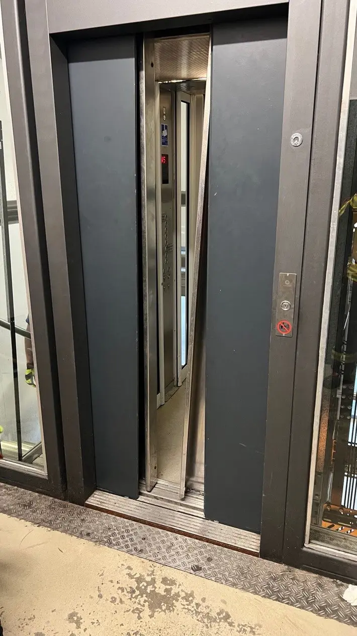 Im Parkhaus steckte der Aufzug mit leicht geöffneten Türen in der obersten Etage fest. Ein Passant hatte die Feuerwehr gerufen, nachdem dieser ein Kind im Fahrstuhl feststellte. Die Feuerwehr versuchte mit leichtem Handwerkzeug die Fahrstuhltüre zu öffnen. Nach mehreren Versuchen konnte ein Feuerwehrmann durch die leicht geöffnete Türe in das Innere des Fahrstuhls eindringen.