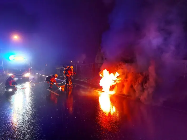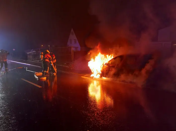 Bei Ankunft der Feuerwehr befand sich das freistehende Fahrzeug im Vollbrand. Es befanden sich keine Insassen im Fahrzeug oder waren unmittelbar in Gefahr.