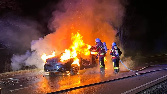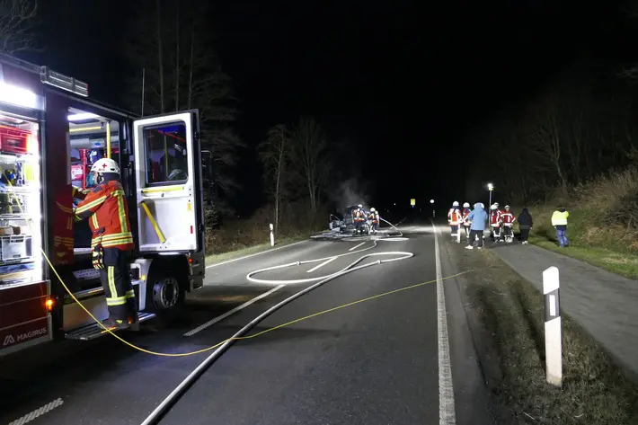 Am 26.01.2023 wurde die Feuerwehr Stockach um 18:04 Uhr zu einem Fahrzeugbrand zwischen Stockach und Nenzingen alarmiert.