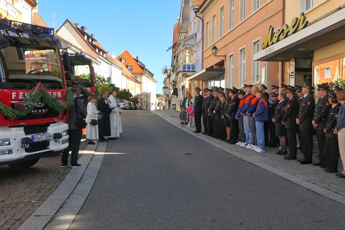 Am 29. September gab es Grund zu feiern, die drei neuen Einsatzfahrzeuge der Feuerwehr Stockach wurden mit einem Gottesdienst in der St. Oswald Kirche und einer offiziellen Feierstunde vor dem Bürgerhaus Adler Post in der Stockacher Oberstadt geweiht.