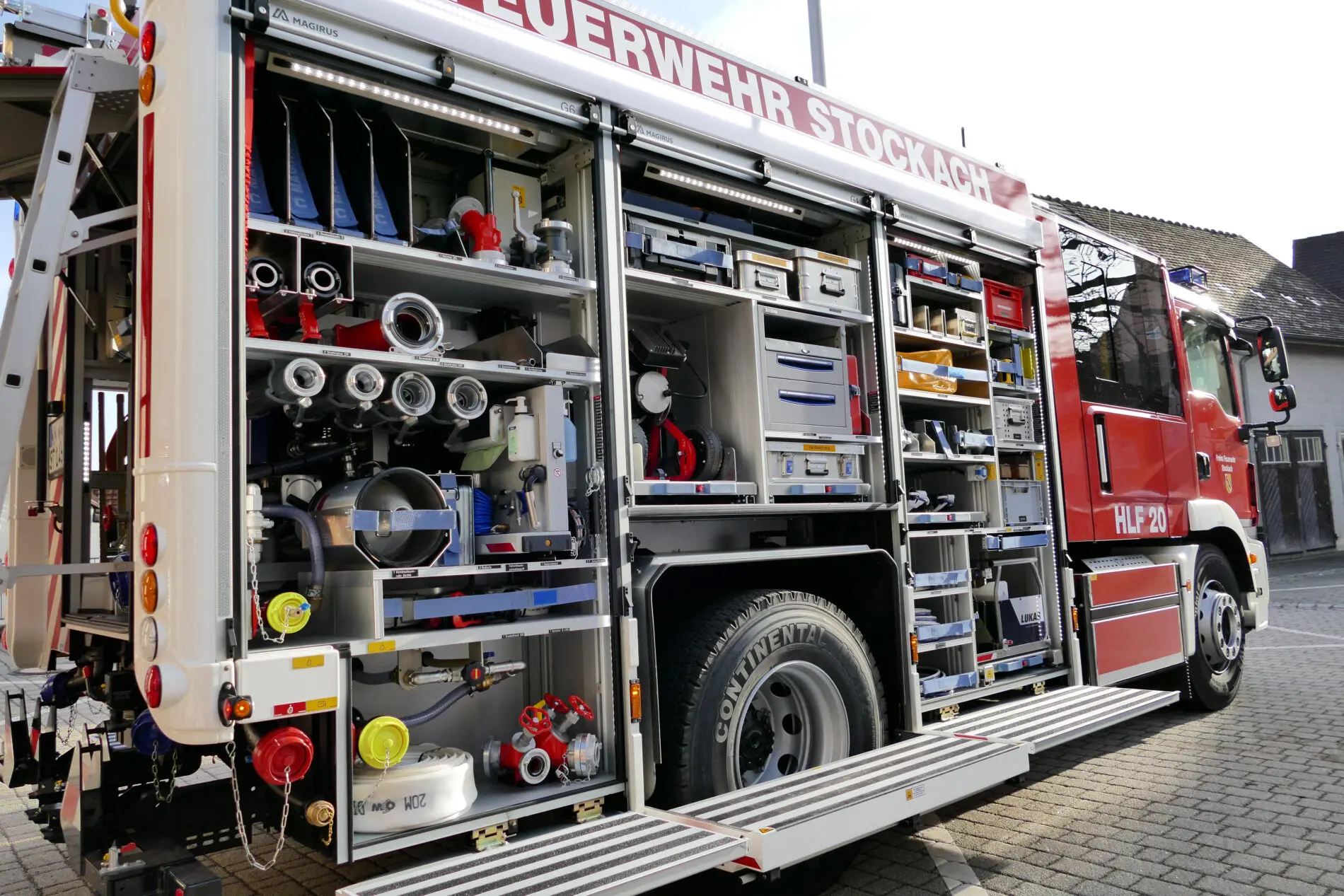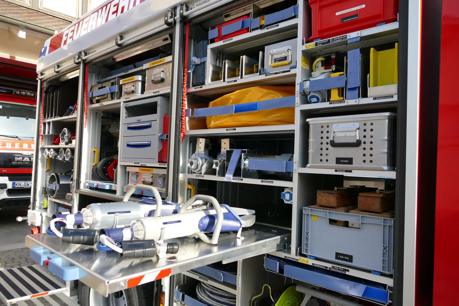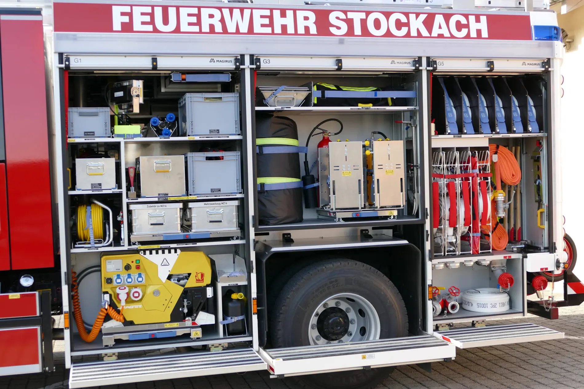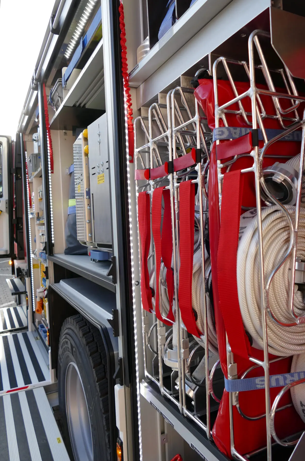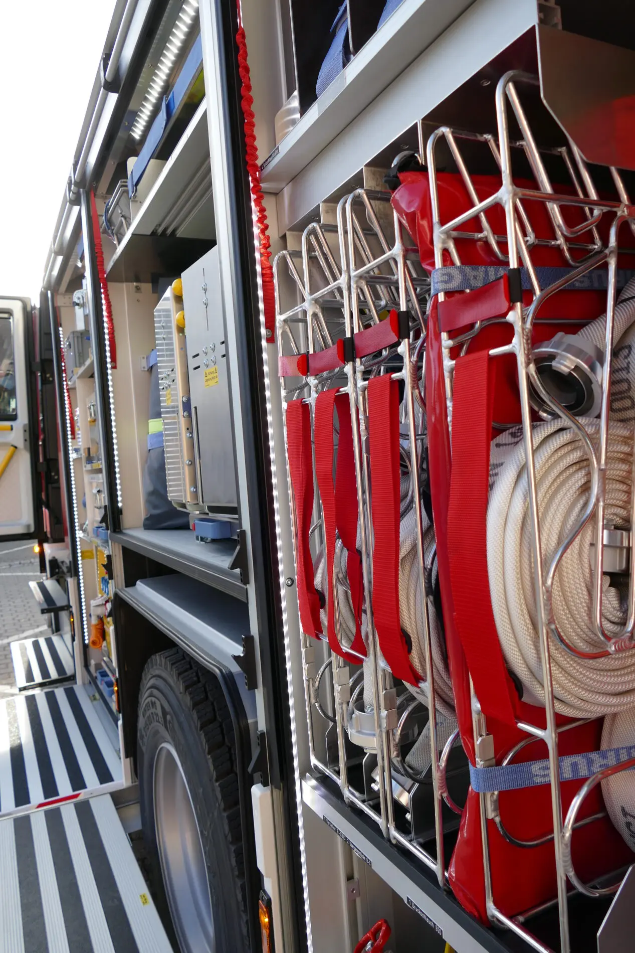 | Beladung: | – 1 Haspel für Verkehrsabsicherung – 1 Haspel für Brandbekämpfung – 4 Atemschutzgeräte – tragbarer Stromerzeuger – 5 Handsprechfunkgeräte im 2m Kanal – hydraulisches Rettungsgerät – Unterbaumaterial – 2 Niederdruck Hebekissen – Fahrzeug-Stabilisierungssystem (StabFast) – Mehrzweckzug – div. Schlauchmaterial + Armaturen – Schnellangriffseinrichtung – Rettungsrucksack, AED, Spineboard – Rauchvorhang – Überdrucklüfter – Lichtmast – tragbare Leitern – Wärmebildkamera – Mehrgasmessgerät – Motorkettensäge, Säbelsäge – Pulverlöscher, CO 2 Löscher, High Press – Sprungretter |