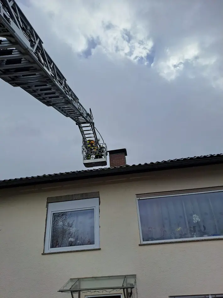 Mit dem hinzugerufenen Schornsteinfeger wurde der Kamin ausgeräumt und von dem Glanzruß befreit. Hierzu wurde ein Atemschutztrupp mit der Drehleiter an den Schornstein herangebracht. Anschließend konnte dieser mit Schornsteinfegerwerkzeug den Schornstein reinigen.