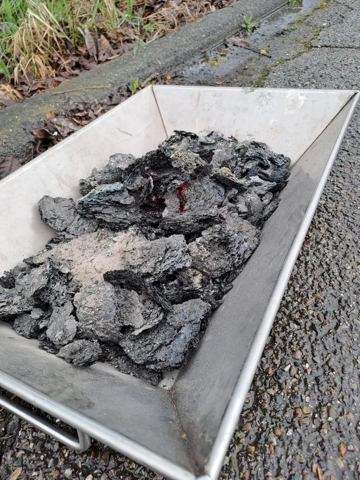 Der brennende Ruß wurde nach draußen gebracht und abgelöscht.