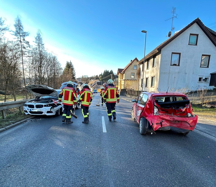 Vor Ort stellten die Einsatzkräfte zwei miteinander kollidierte Pkw fest. Die Unfallbeteiligten befanden sich bereits in der Obhut des Rettungsdienstes und waren nicht in ihren Fahrzeugen eingeklemmt.