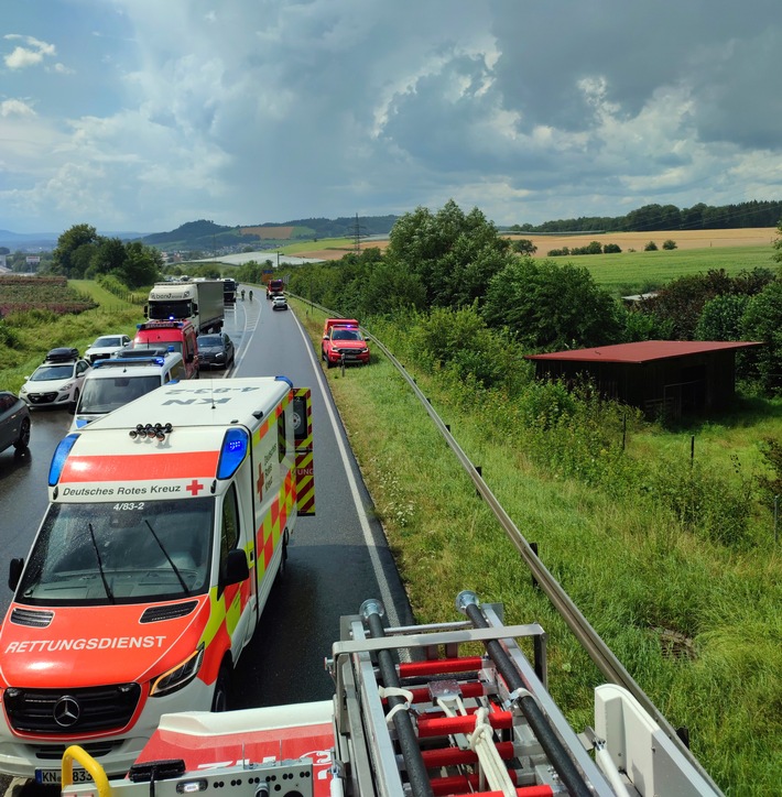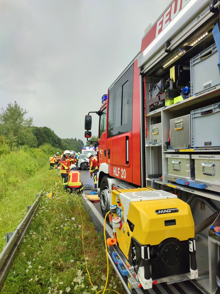 Vor Ort ist ein PKW von der Fahrbahn abgekommen, hatte sich überschlagen und ist im Grünstreifen neben der Autobahn zum Stehen gekommen. Mehrere Airbags hatten aufgrund des Überschlags im Fahrzeug ausgelöst.