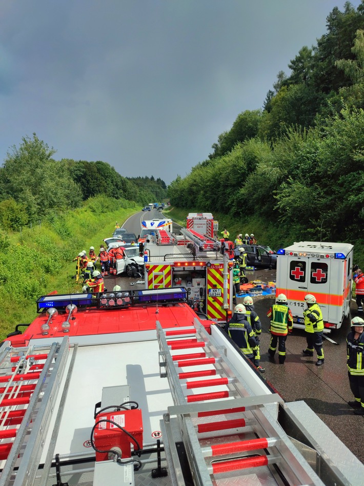Die Anfahrt gestaltete sich aufgrund des hohen Verkehrsaufkommens teils sehr schwierig für die nachrückenden Kräfte. Der Verkehrsfluss war mittlerweile komplett zum Erliegen gekommen und alle Fahrspuren waren gesperrt. Bei Eintreffen der weiteren Einsatzkräfte konnte ein schwerer frontaler Verkehrsunfall zwischen zwei Fahrzeugen vorgefunden werden. Zwei Personen waren beim Eintreffen der Feuerwehr in ihrem Fahrzeug eingeklemmt und mussten durch die Einsatzkräfte mit schwerem hydraulischem Rettungsgerät befreit werden.